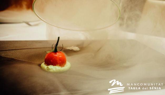 Deconstrucción de anguila ahumada con ajo blanco de aceite de oliva Farga Milenaria